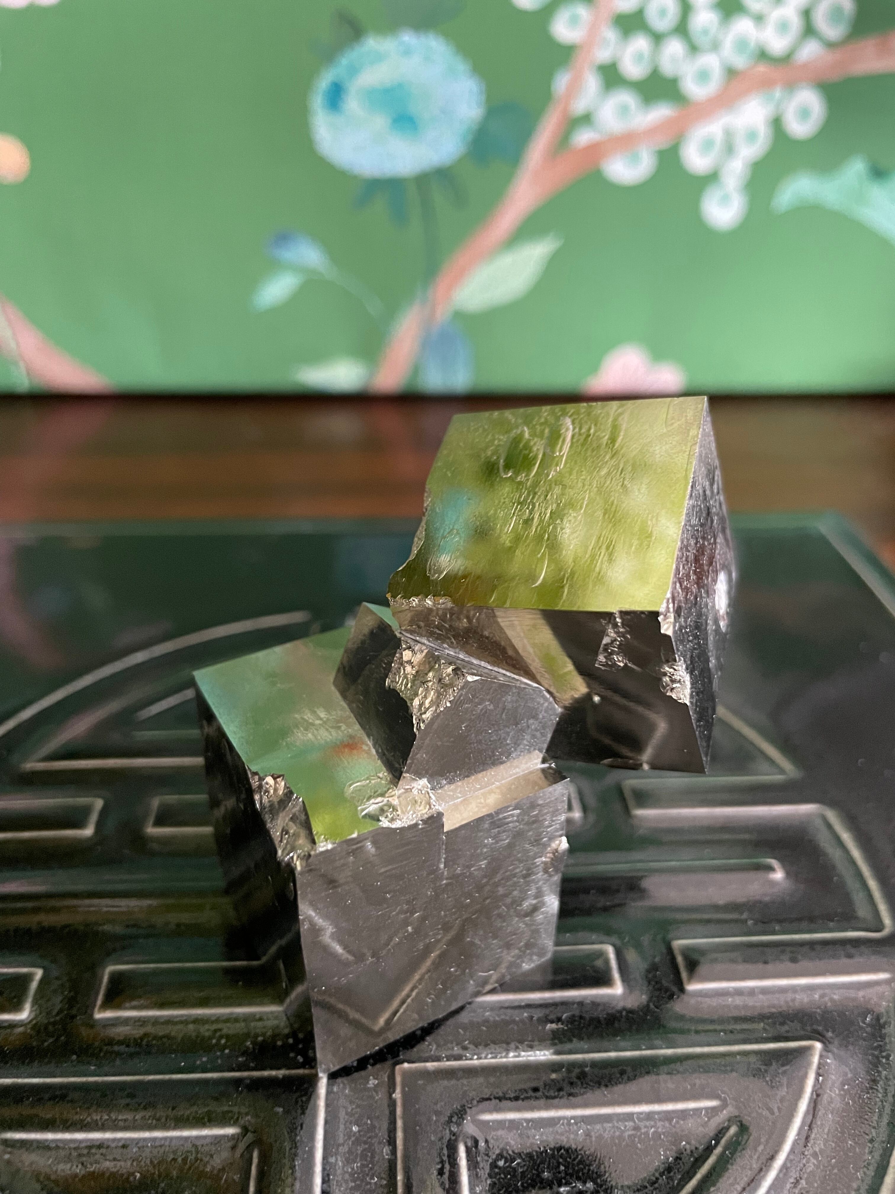 スペイン産パイライトキューブ!このパイライトは、天然鉱石で、地球上でもとても珍しい存在です。重く、大きめのサイズで、存在感たっぷり。立方体に削られた、美しい見た目は、まるでアート作品。手に取ると、重量感とともに、優雅な雰囲気を感じることができます。