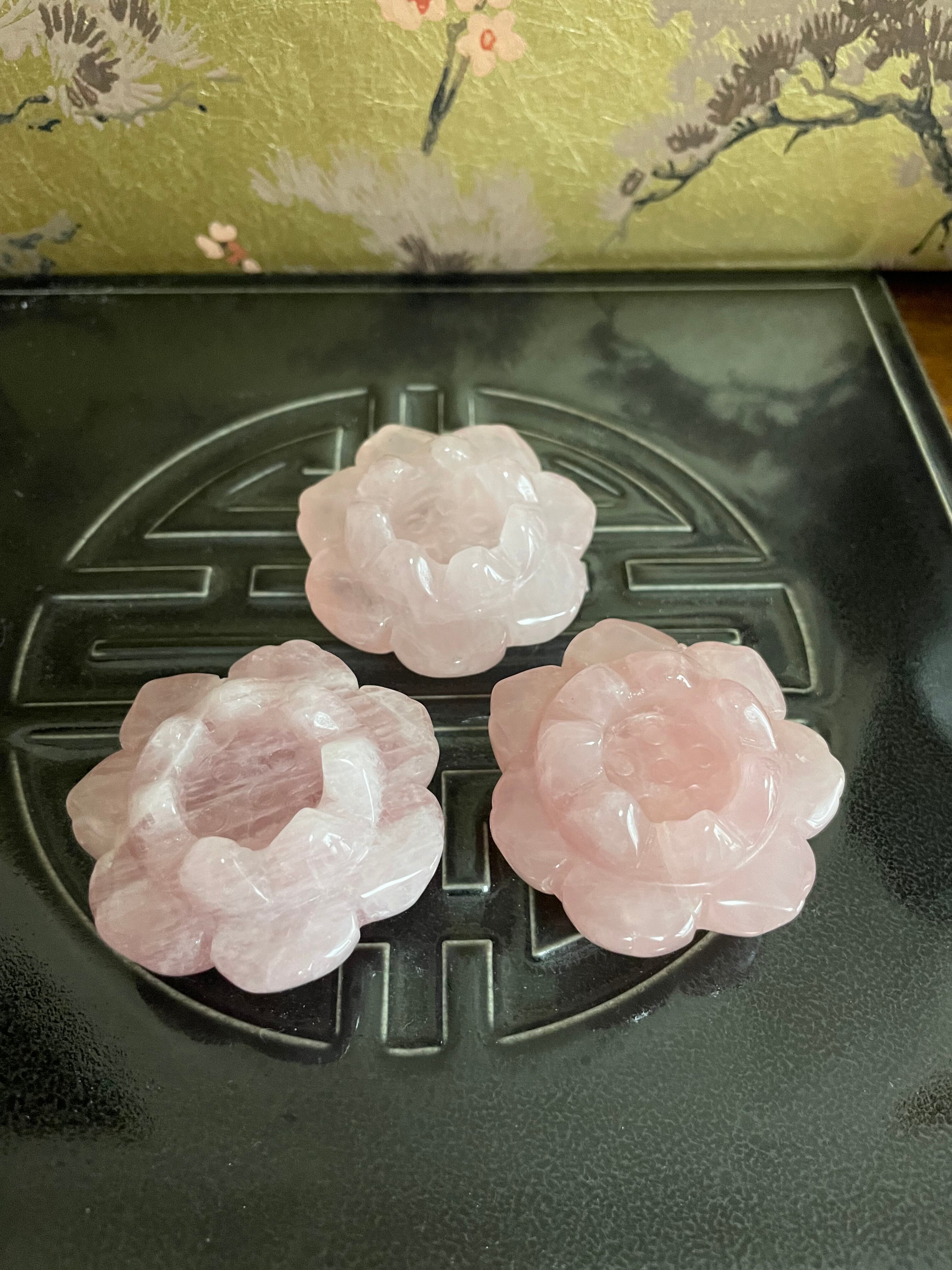 ローズクォーツ 蓮の花 座台 瞑想にも