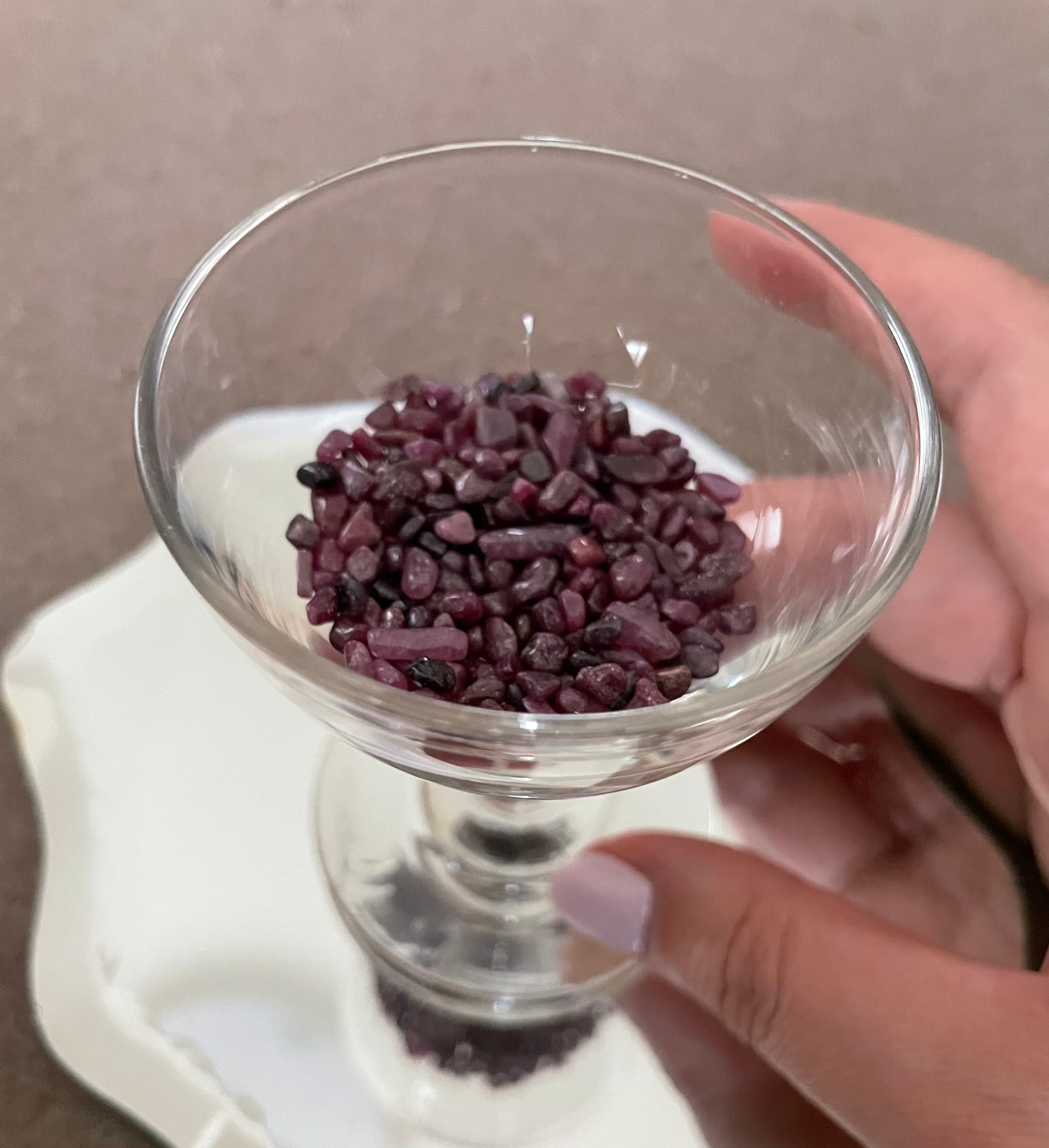 ルビーの細石が、この度オンラインショップでもご購入いただけるようになりました。細かな石が20グラム入っています。美しいガラスの器などにいれて飾るとインテリアにぴったり。