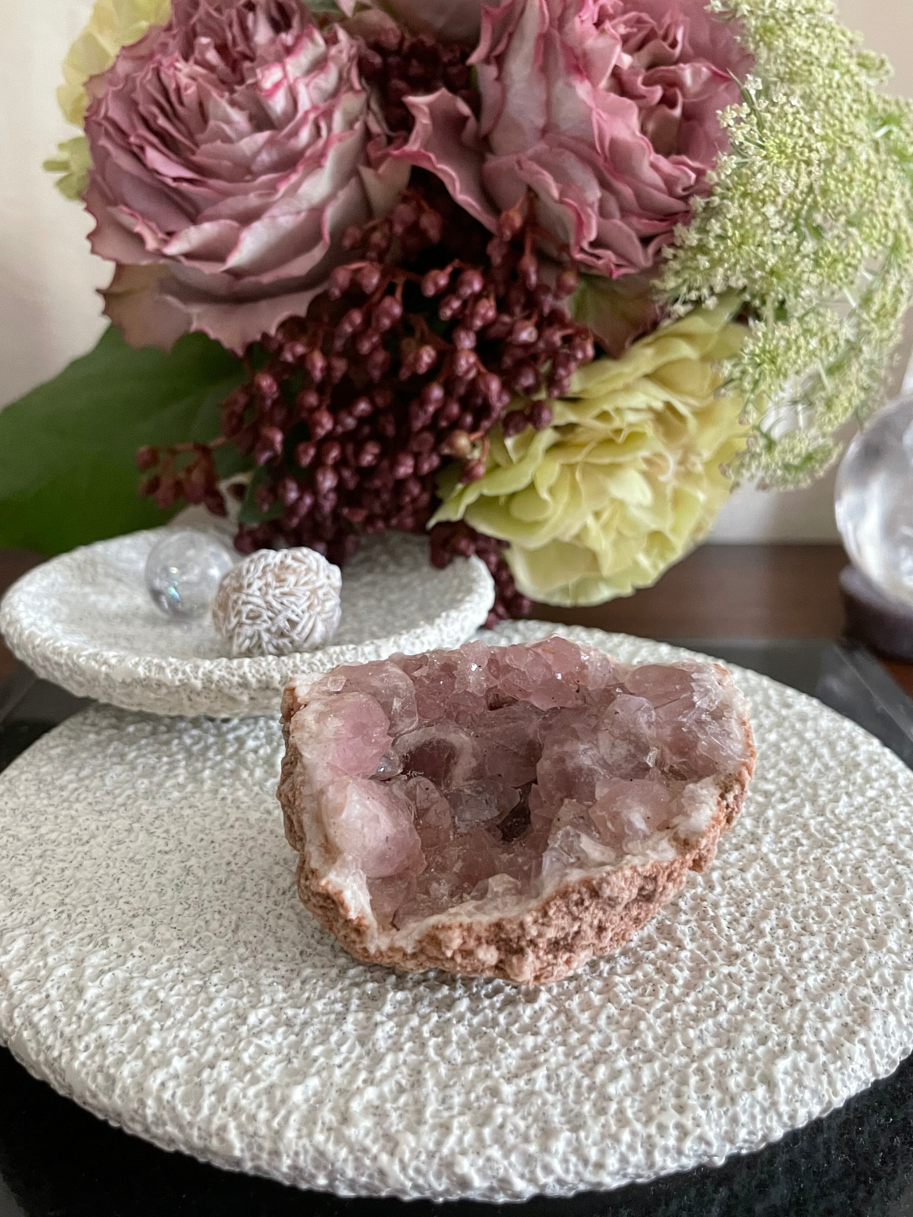 このアルゼンチン・パタゴニア産ピンクアメジスト ゲオードは、お部屋の置物としても、おしゃれで素敵です。自然の美しさを楽しむことができる逸品です。ぜひ、ご自身や大切な方への贈り物にいかがでしょうか。