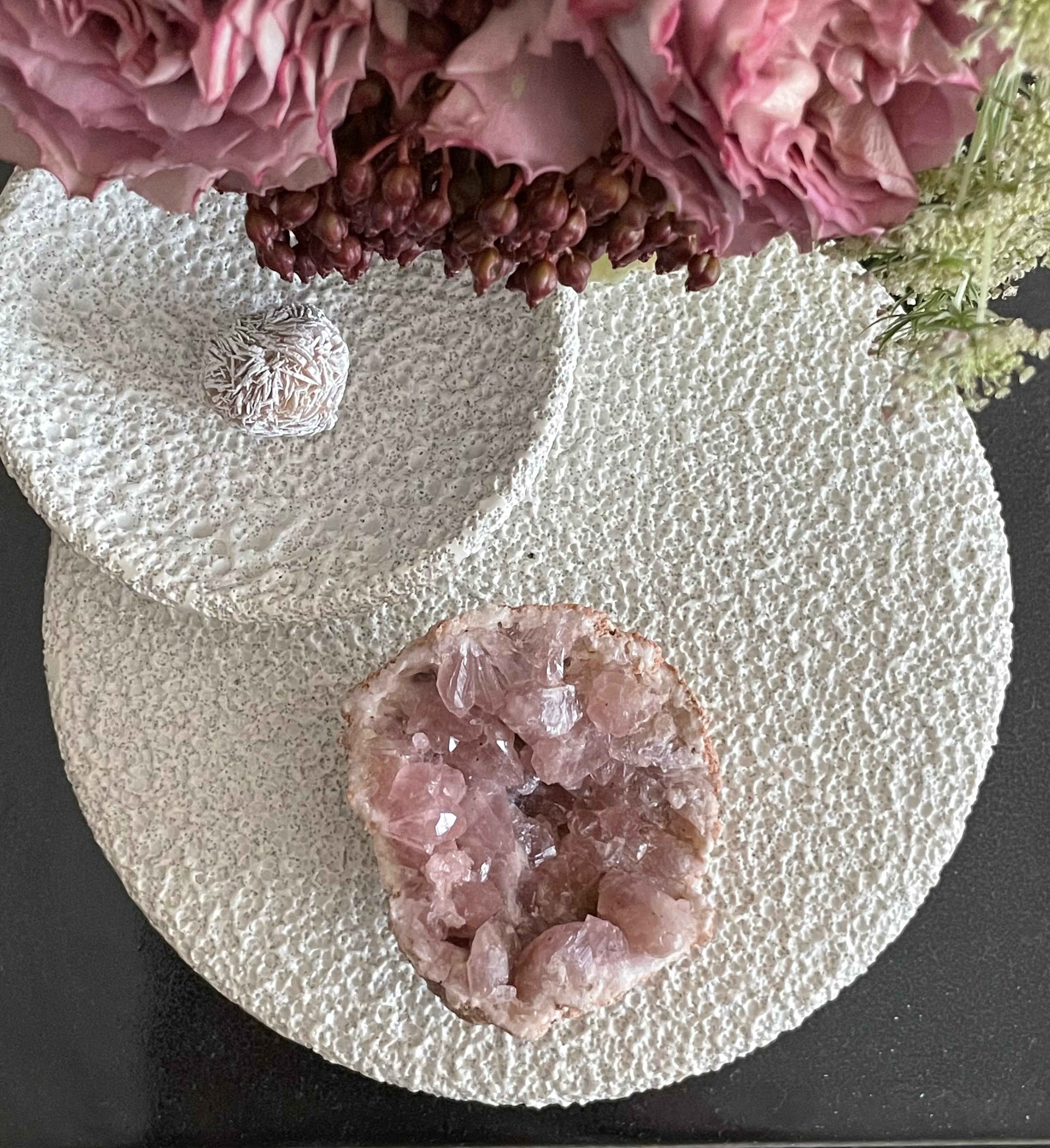美しいピンク色が特徴の、アルゼンチン・パタゴニアで採掘されたアメジストゲオード。自然の力で形作られた美しい結晶の輝きをお楽しみいただけます。