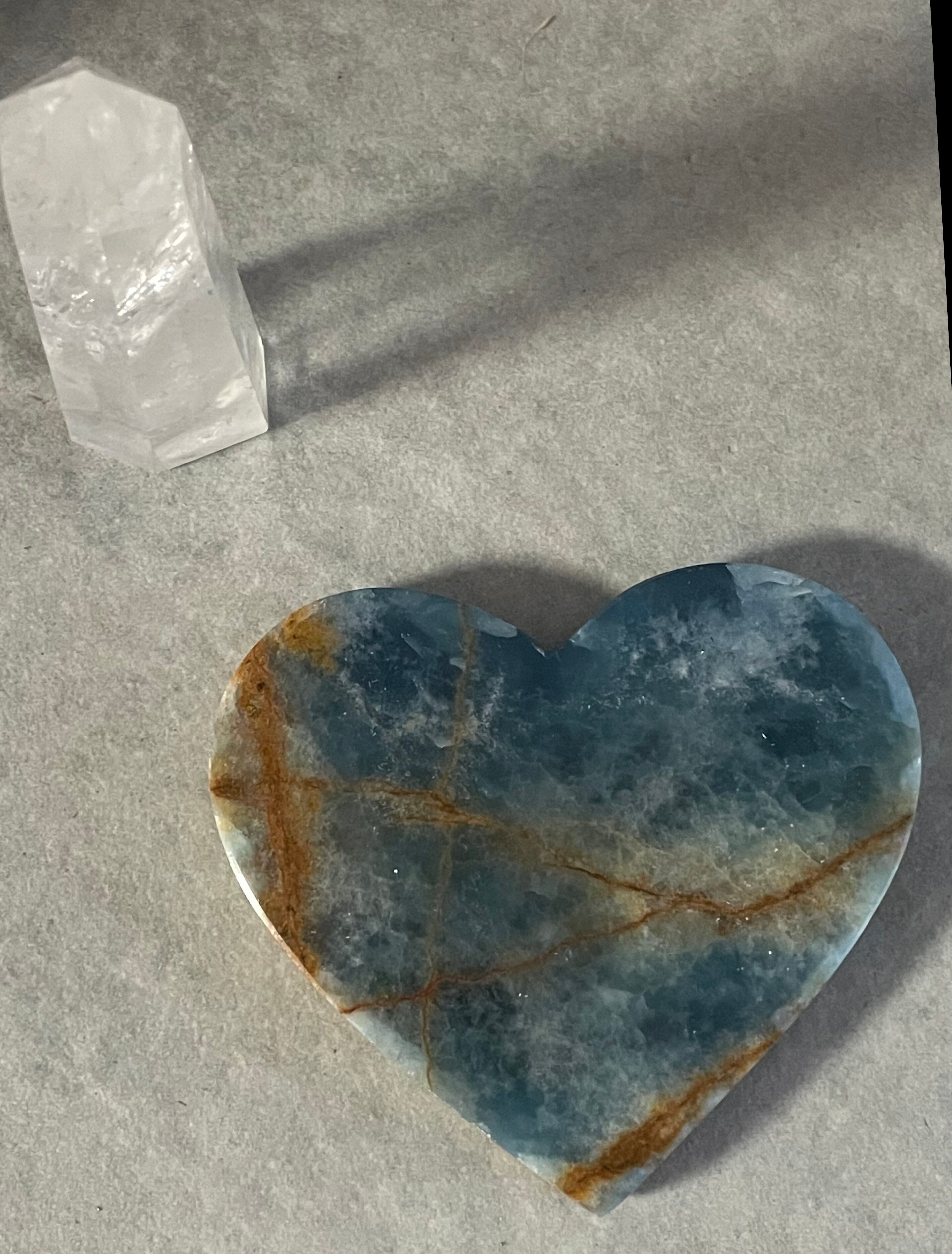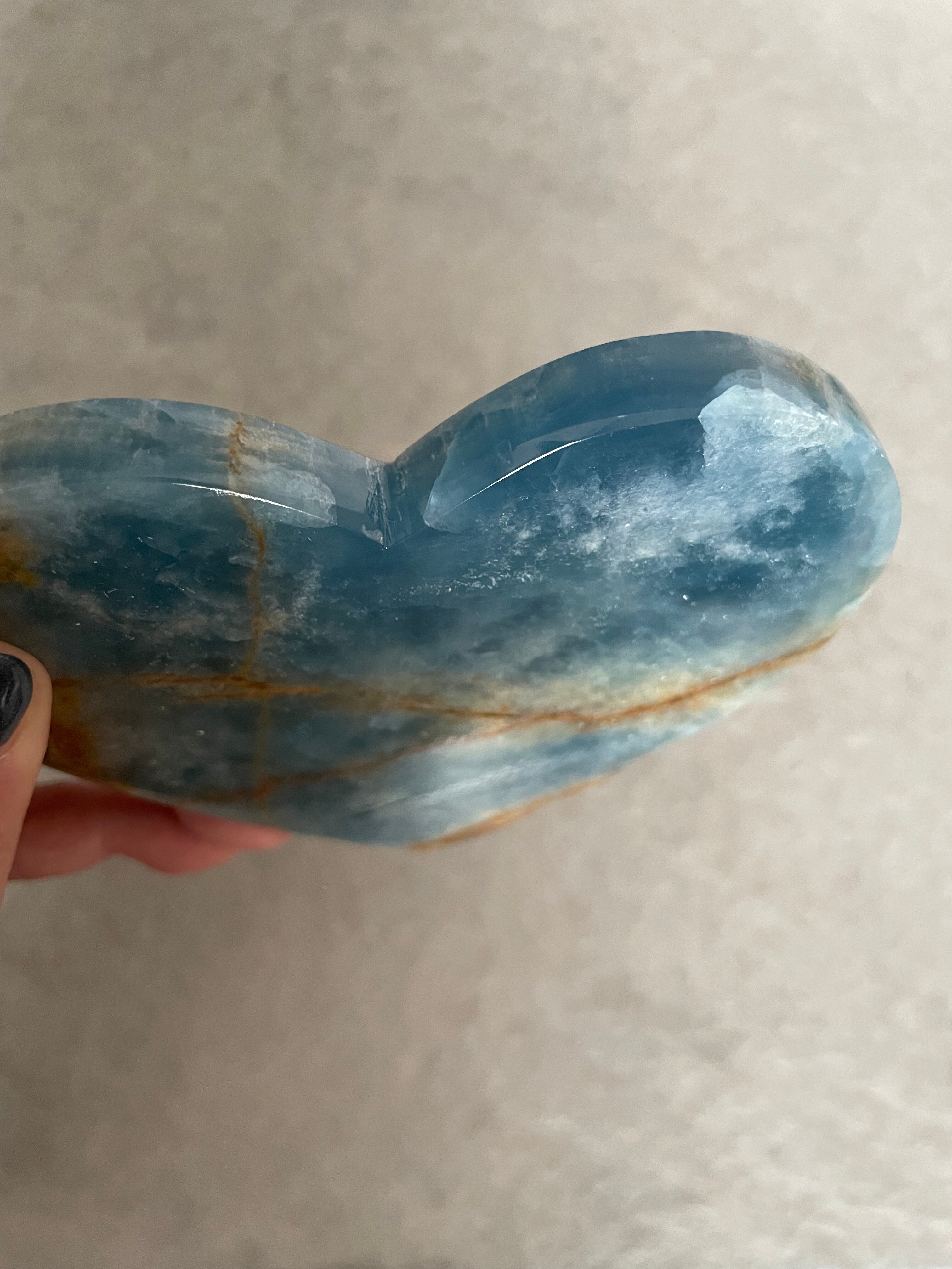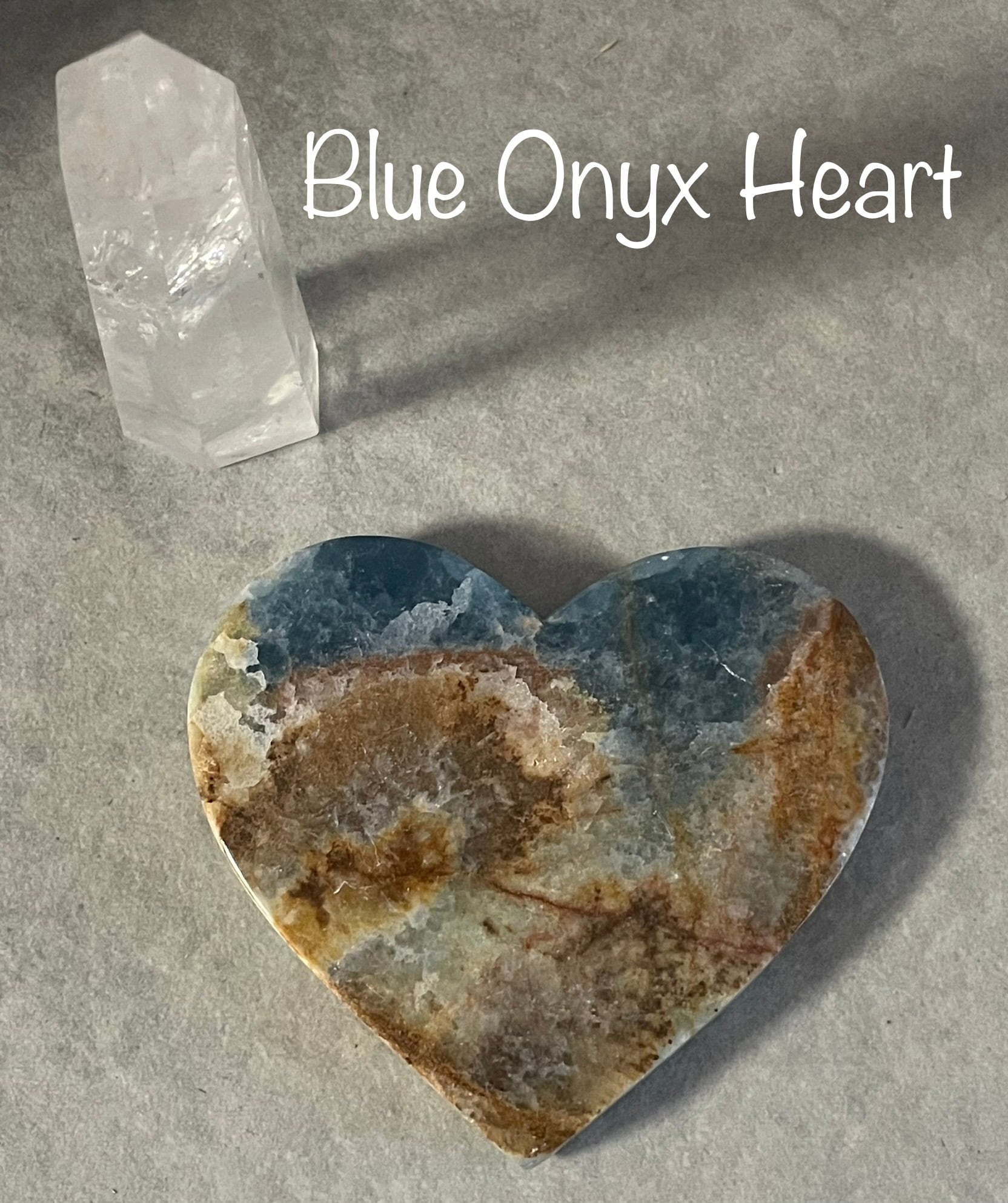 ブルーの色柄が芸術的に美しい、フラット状のハート型オニキスになります。