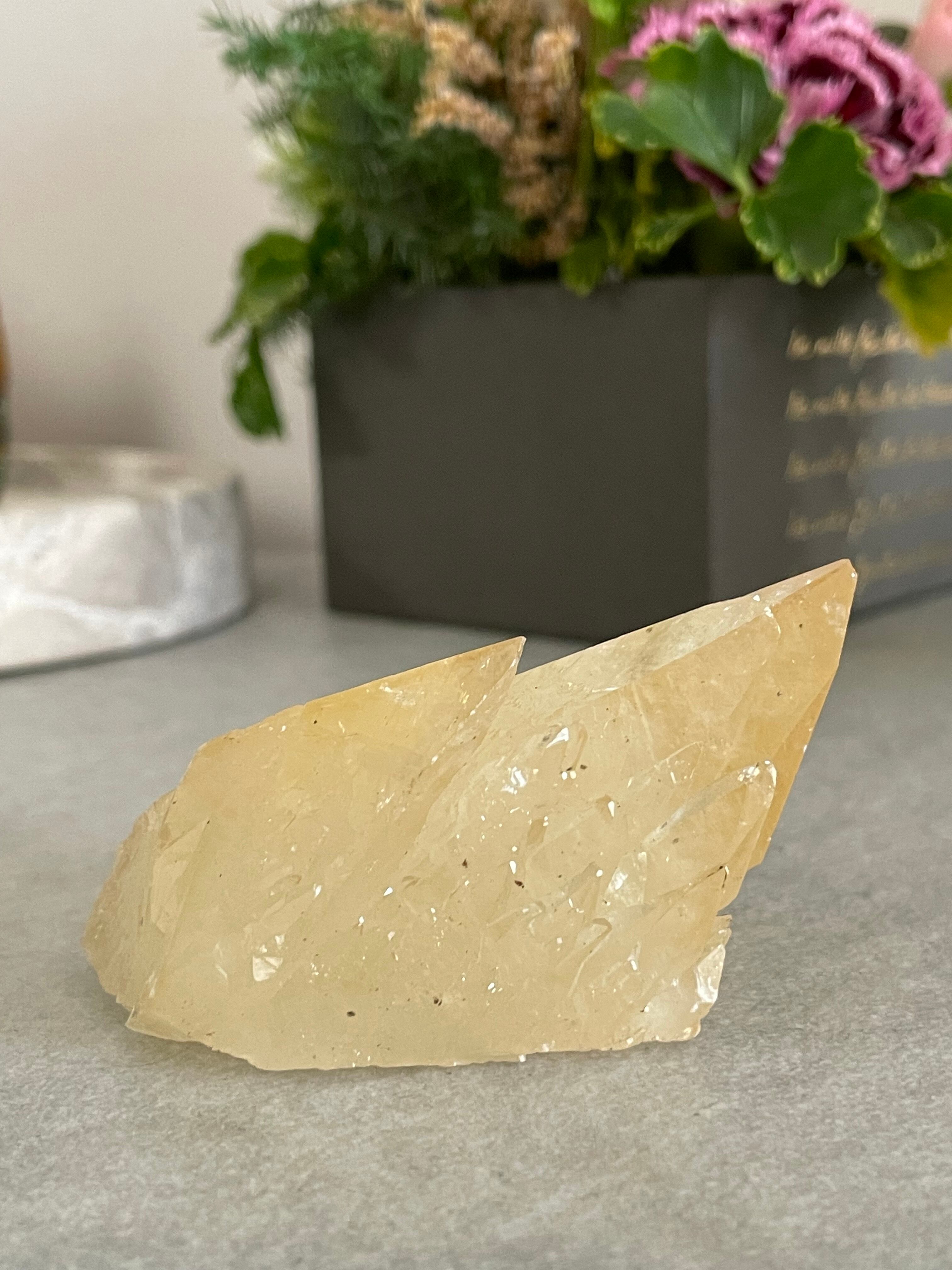 テリがとてもよいです。鉱物好きな方に。デスクや棚に置いてあるだけでとても絵になるカルサイトです。