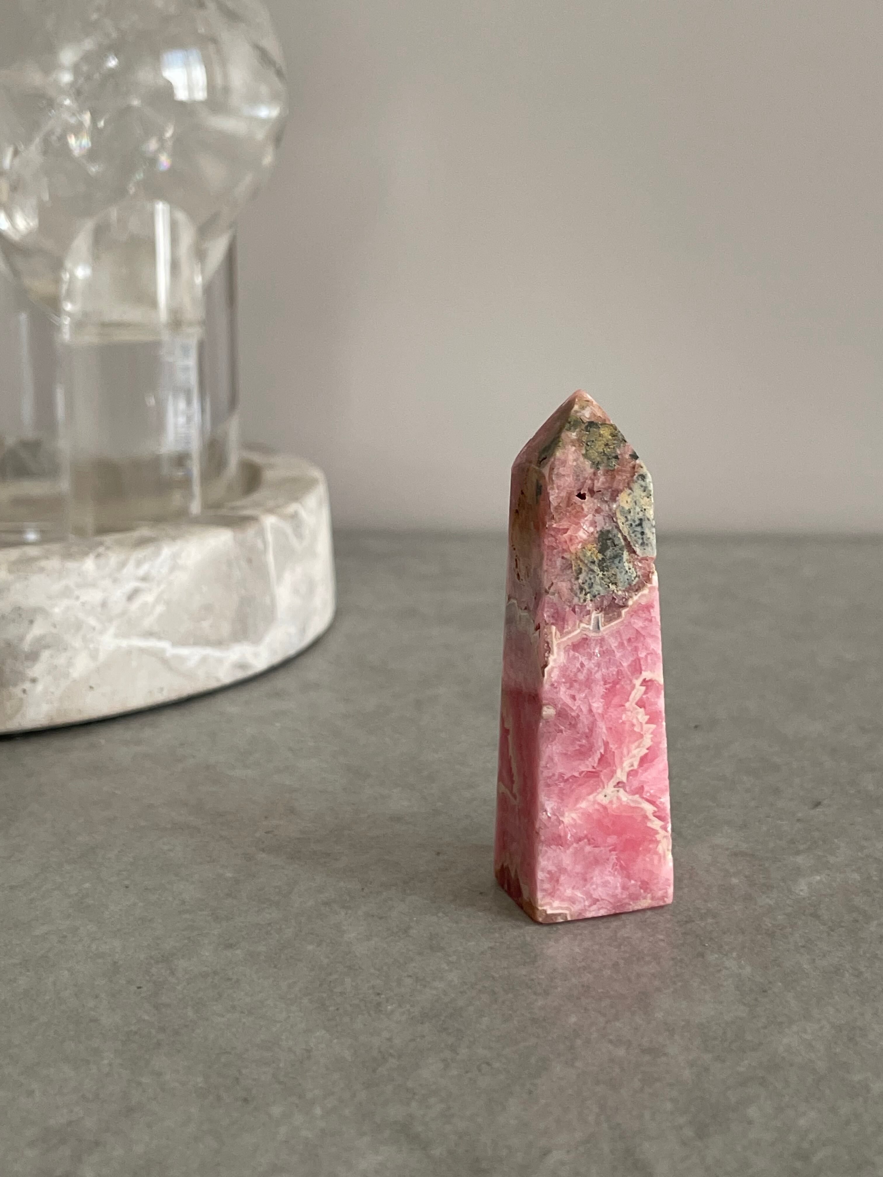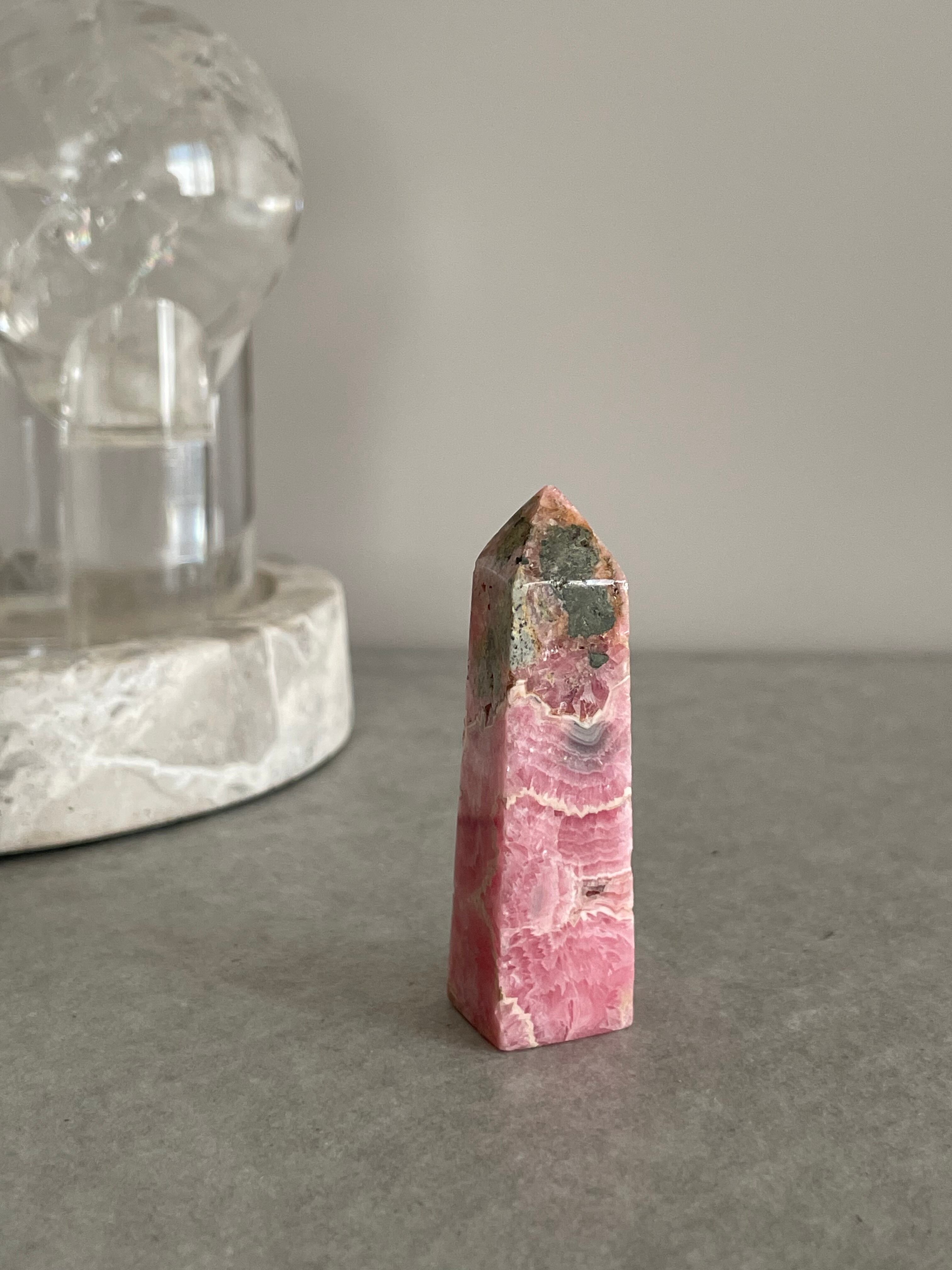 澄んだピンク色が美しいロードクロサイト ポイント。ペルー産の貴重な天然石で、その美しさとパワフルなエネルギーが魅力です。インカ帝国の時代から人々に愛され、幸運や愛情を引き寄せる力があると言われています。